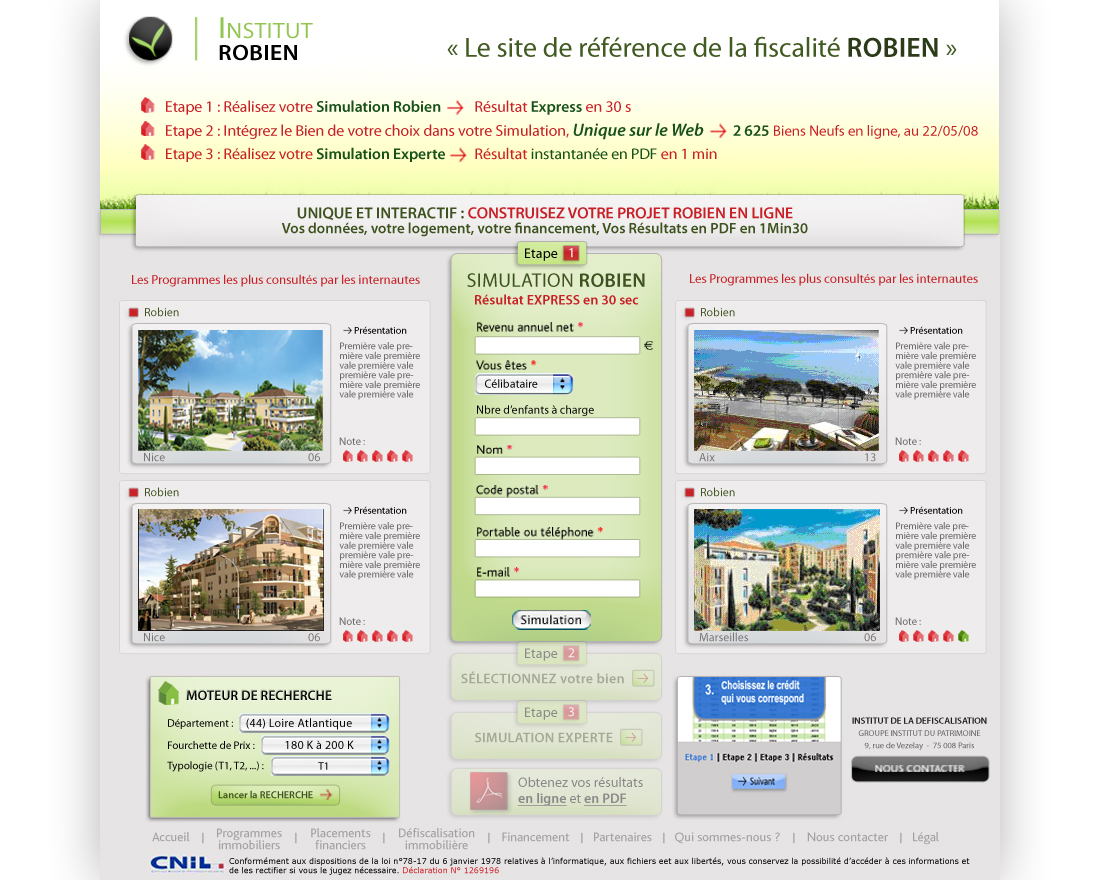 Création graphique de landing page sur l’immobilier et la défiscalisation, basé sur la charte graphique d’Institut défiscalisation.