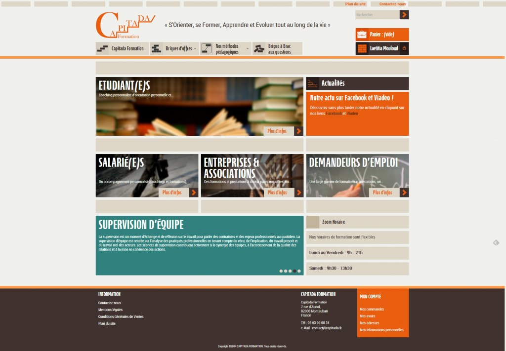 Création graphique, ergonomique et structurel du site ecommerce Capitada Formation.